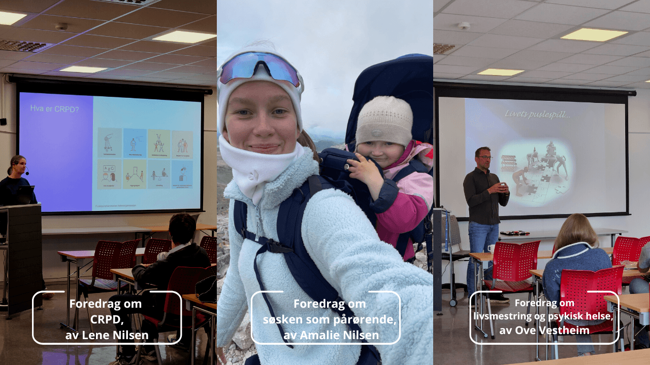 - 12:30 – 13:10 Foredrag om søskenperspektivet, v/Amalie Nilsen. Bli kjent med Amalie og hennes historie: Søsken som pårørende